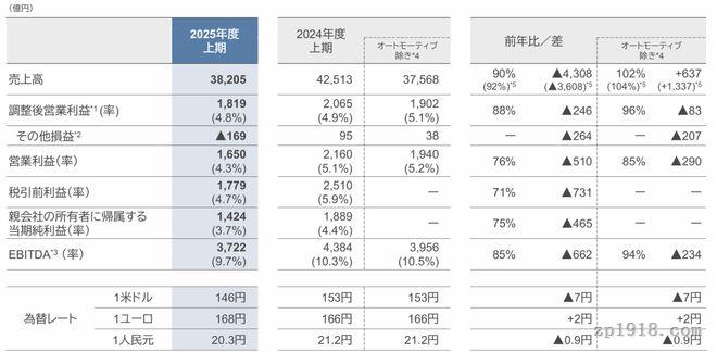 據松下控股發布的2025財年半年度報告,該公司4-9月銷售額38205億日元,同比減少10%(調整后為8%),歸屬于母公司股東的凈利潤1424億日元,同比減少25%;EBITDA利潤率9.7%。